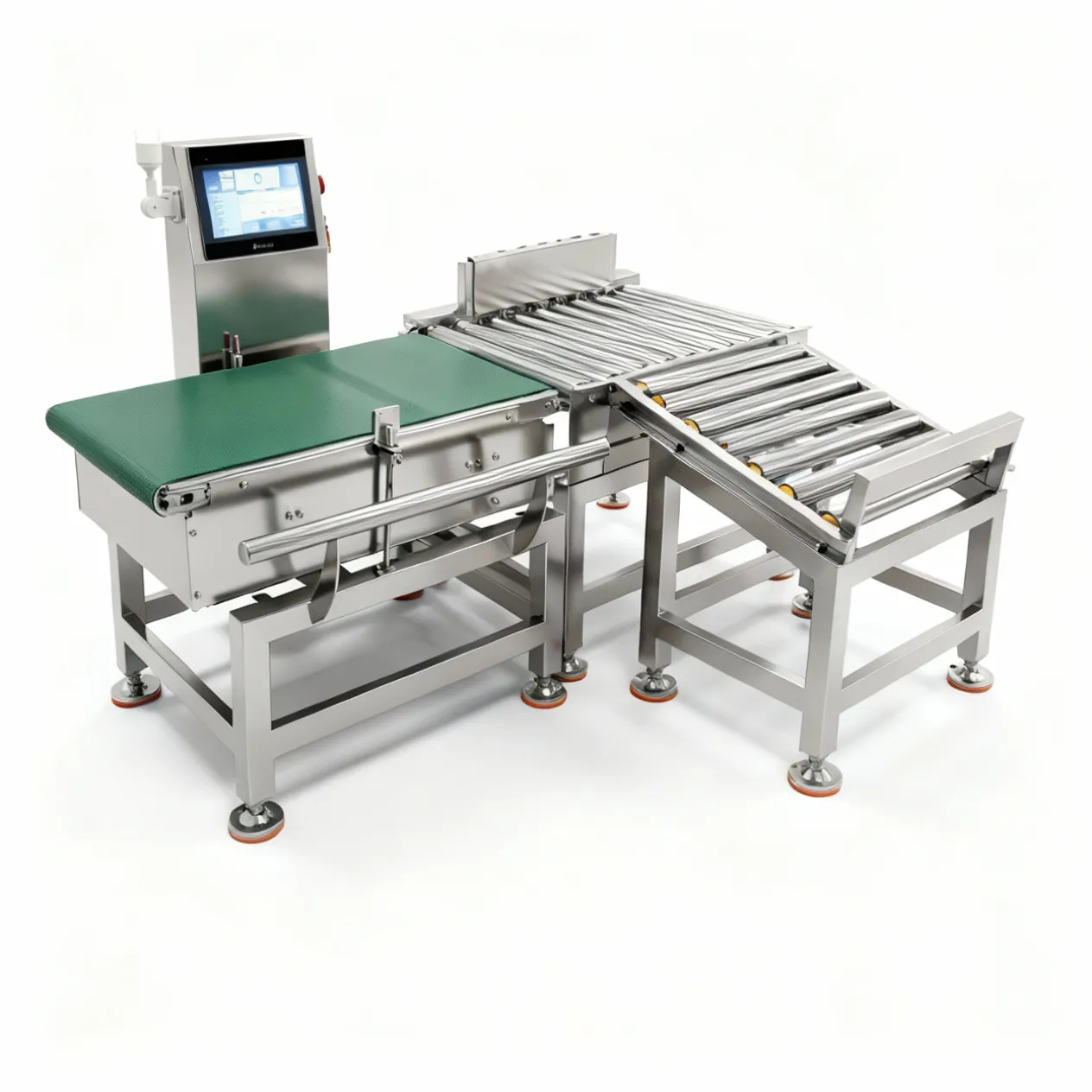 This series model is an automated equipment mainly used online dynamic weighing ofpackaged product passing through the automated packaging streamline It can detectout the product of unqualified weight during the continuous working process. Thecomponents and parts of the product are easy to disassemble for cleaning. Importedelectric components are adopted and have IP66 waterproof rating. The operatinginterface adopts touch screen display, can store parameters of more than 10 kinds ofdifferent weight specification so as to facilitate operation.