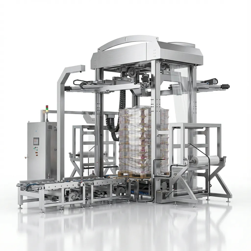 The CY-ST stretch film wrapping machine's corefunction is automated film packaging, incorporatingadvanced stretch technology and a high-precisionultrasonic detection system. It can precisely andevenly stretch PE film, reducing material waste andlowering packaging costs. Real-time monitoring offilm stretching, positioning, and sealing prevents bagbreakage and leakage, ensuring packaging quality.The equipment maintains a stable packaging speedof 50-60 pallets per hour and can be seamlesslyintegrated with upstream and downstream equip-ment for fully automated processes. It is suitable forlarge-sc...